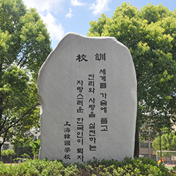 무궁화의 끈기와 아름다움으로 한민족의 정기를 받아 세계로 미래로 피어가는 상해한국학교 꿈나무를 상징