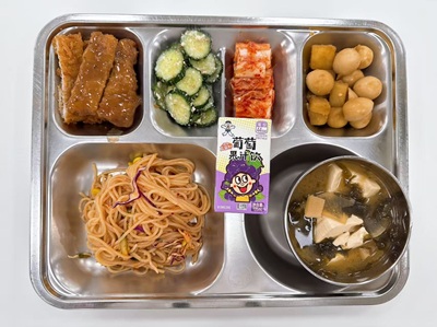메뉴:물쫄면/미소된장국/메추리알조림/오이참깨무침/배추김치/과일쥬스