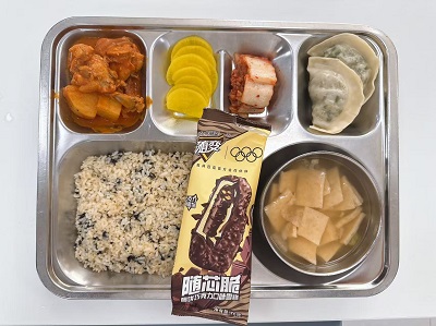 메뉴:김가루밥/어묵탕/로제찜닭/납작만두/단무지/배추김치/아이스크림