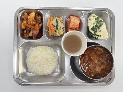 메뉴:차조밥/소고기우거지국/오징어불고기/영양계란찜/콩나물무침/배추김치/수제식혜