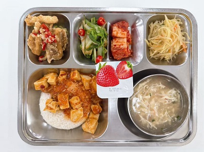 메뉴:마파두부덮밥/맛살계란탕/유린기/감자채볶음/얼갈이배추볶음/배추김치/과일요거트