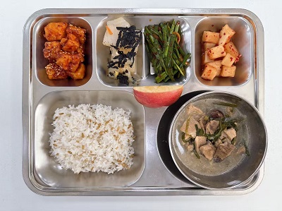 메뉴:귀리밥/순대국밥/두부강정/영양부추무침/청포묵무침/깍두기/계절과일