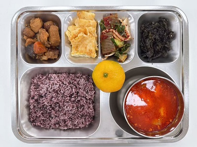 메뉴:흑미밥/해물순두부찌개/돈육장조림/양념도토리묵/배추전/김자밥/계절과일