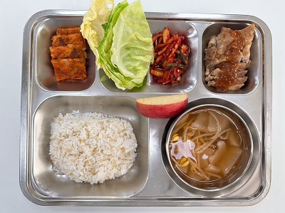 메뉴:현미밥/얼큰무국/한방보쌈/김치전/양배추찜&쌈장/보쌈무김치/계절과일