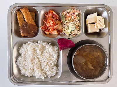 메뉴:일식카레라이스/쯔유장국/수제돈까스/양배추샐러드/모찌두부/배추김치/계절과일
