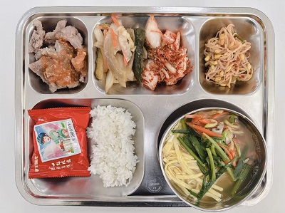 메뉴:백미밥(자율)/잔치국수/양념묵살구이/콩나물볶음/모듬야채절임/초코파이