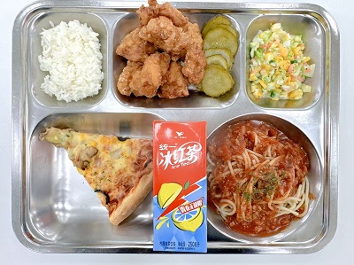 메뉴:백미밥(자율)/토마토파스타/수제피자/순살치킨/코올슬로/피클/음료수