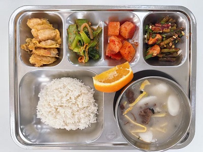 메뉴:찹쌀밥/사골떡국/통새우전/청경채무침/마늘쫑무침/깍두기/계절과일